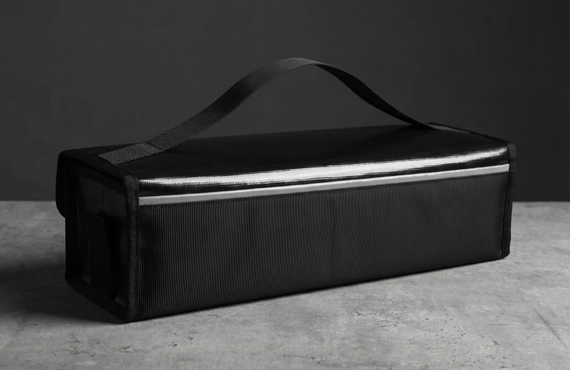 Our largest bag, specifically designed for the latest high-capacity batteries like the Bosch PowerTube 750. Spacious enough for every e-bike battery on the market. The same three-layer fire-resistant construction as the Classic, but in an XL size with extra-sturdy handles.
