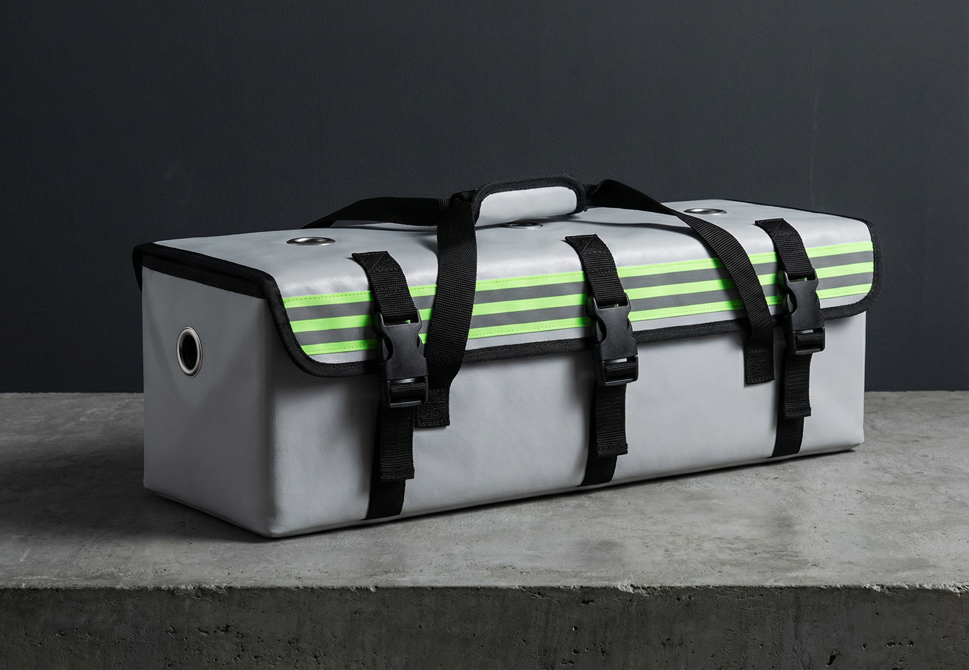 Klein, licht en betaalbaar — maar net zo veilig. Perfecte brandveilige tas om je accu mee te nemen naar college, werk of het station. Siliconen glasvezel buitenkant, zachte binnenbekleding, en een handige draaglus. Past in je rugzak.